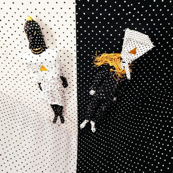 Sur scène, leur esthétique oscille entre film d’horreur décalé et émission jeunesse surréaliste : têtes en papier mâché, costumes noir et blanc ornés de picots… Une image éclatée, assumée, qui annonce déjà l’expérience hors norme.